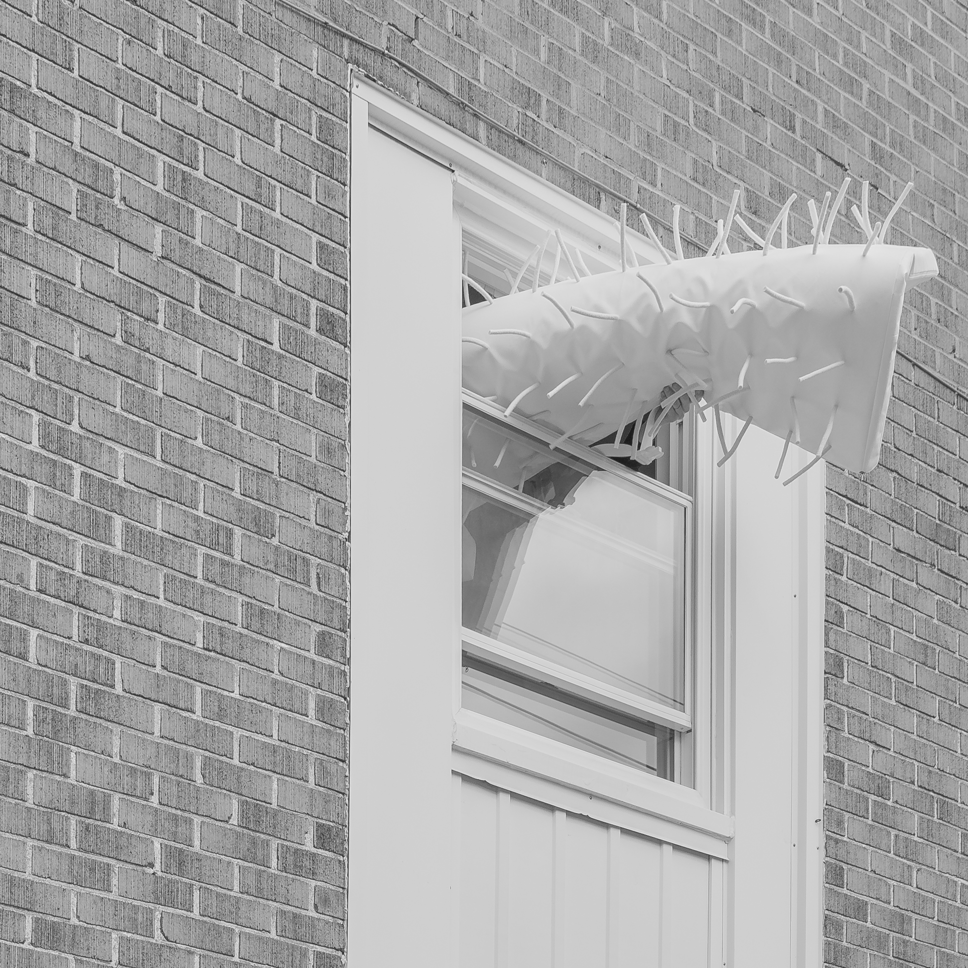 La fenêtre comme brèche de réceptivité d'air et de lumière devient ouverture fragile à protéger. Cette greffe architecturale présente un refus de l’extérieur, enlève la vue, retire le jour. Dans cette tentative échouée, la matière à l’isolement renferme sur elle-même la maison et ses sujets habitants.